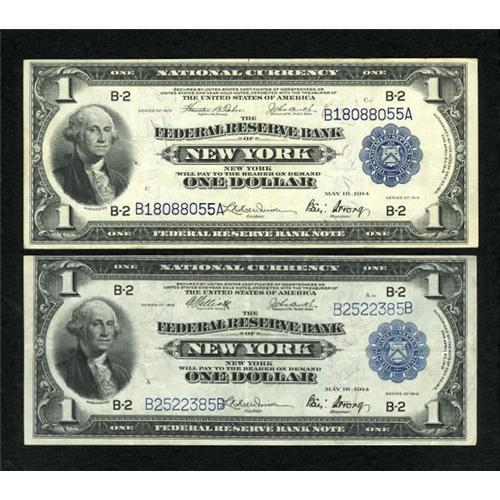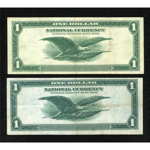 <B>Fr. 712 $1 1918 Federal Reserve Bank Note Extremely Fine.</B></I><BR><B>Fr. 713 $1 1918 Federal Reserve Bank Note Very Fine-Extremely Fine.</B></I> A pleasing pair of New York Aces that remain well embossed with plenty of crispness.<BR><BR><b>Shipping:</b> Coins & Currency (<a target="_blank" href="http://www.heritageauctions.com/common/shipping.php">view shipping information</a>)