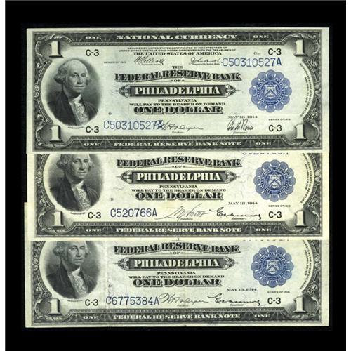 <B>Fr. 714, Fr. 715, Fr. 717 $1 1918 Federal Reserve Bank Notes Three examples.</B></I> This trio grades <B>VF-XF</B></I> with bright colors and solid margins.<BR><BR><b>Shipping:</b> Coin/Currency (<a target="_blank" href="http://www.heritageauctions.com/common/shipping.php">view shipping information</a>)