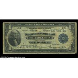 Fr. 716 $1 1918 Federal Reserve Bank Note CGA Fine 12. Although not particularly impressive as to grade or appearance as a $1 Flying Eagle note, the statistics should impress even the specialist. Only 14 examples of this number are reported in the census, making this one of the most difficult $1 FRBNs in the entire series. Important notice: We expect to be auctioning lots at the rate of 200-250 per hour. Sometimes eBay Premier live bid software cannot keep up with that pace, so we strongly recommend that you place a realistic proxy bid now as insurance to avoid disappointment. Also please note that all Heritage/CAA lots purchased through eBay Premier carry a 20% Buyer's Premium. Please make sure you read the Terms and Conditions.