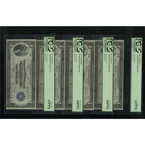<B>Fr. 716 $1 1918 Federal Reserve Bank Note Cut Sheet of Four PCGS New 62PPQ, Very Choice New 64PPQ, Very Choice New 64PPQ, Choice New 63PPQ.</B></I> The last of this exceptional run of Fr. 716's, with the notes in this cut sheet grading New 62PPQ, Very Choice New 64PPQ, Very Choice New 64PPQ and Choice New 63PPQ respectively.<BR><BR><b>Shipping:</b> Coin/Currency (<a target="_blank" href="http://www.heritageauctions.com/common/shipping.php">view shipping information</a>)