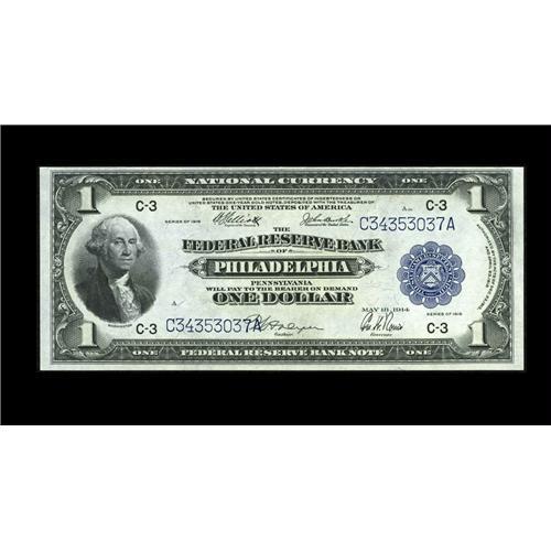 <B>Fr. 717 $1 1918 Federal Reserve Bank Note Choice New.</B></I> A bit tight at the top on the face but a pristine original piece with great color and all its original embossing.