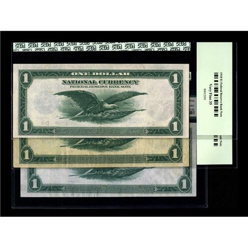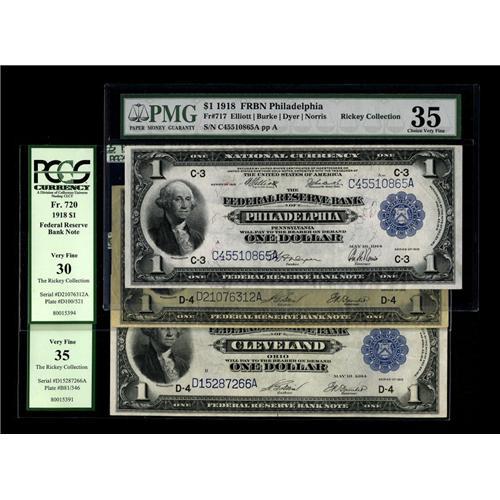 <B>Fr. 717 $1 1918 Federal Reserve Bank Note PMG Choice Very Fine 35, Fr. 719 $1 1918 Federal Reserve Bank Note PCGS Very Fine 35, Fr. 720 $1 1918 Federal Reserve Bank Note PCGS Very Fine 30.</B></I> This is a nice trio of lightly circulated Green Eagle notes.<BR><I>Ex: Rickey Collection</B></I><BR><BR><b>Shipping:</b> Coin/Currency (<a target="_blank" href="http://www.heritageauctions.com/common/shipping.php">view shipping information</a>)