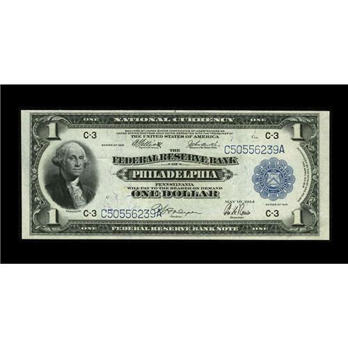 <B>Fr. 717 $1 1918 Federal Reserve Bank Note Superb Gem New.</B></I> Prominent embossing decorates this well preserved Philly $1.<BR><I>From The Plymouth Rock Collection</B></I>