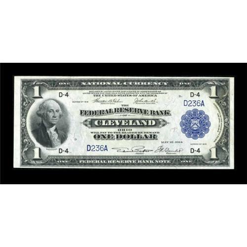 <B>Fr. 718 $1 1918 Federal Reserve Bank Note Very Choice New.</B></I> This three-digit D236A Cleveland Ace has excellent paper originality and comes quite close to the full Gem grade. <BR><BR><b>Shipping:</b> Coins & Currency (<a target="_blank" href="http://www.heritageauctions.com/common/shipping.php">view shipping information</a>)