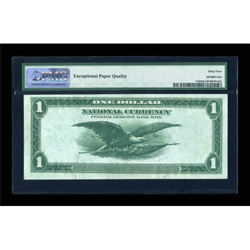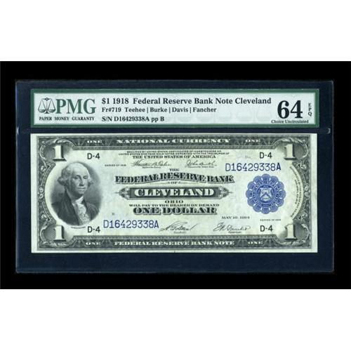 <B>Fr. 719 $1 1918 Federal Reserve Bank Note PMG Choice Uncirculated 64 EPQ.</B></I> A very nice Type example that comes extremely close to the full Gem grade. The "Exceptional Paper Quality" designation helps this note along.<BR><BR><b>Shipping:</b> Coins & Currency (<a target="_blank" href="http://www.heritageauctions.com/common/shipping.php">view shipping information</a>)