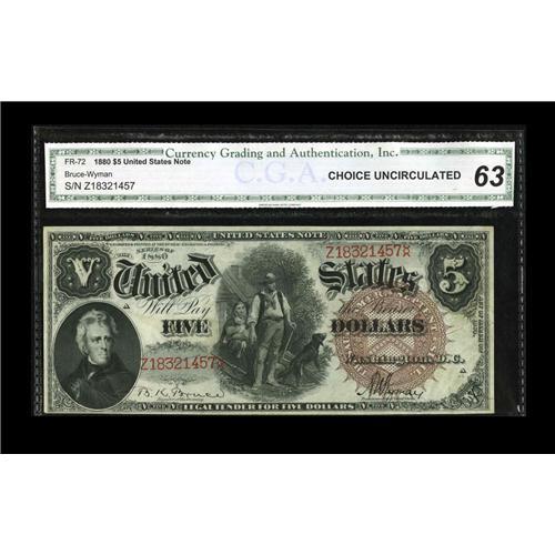 Fr. 72 $5 1880 Legal Tender CGA Choice Uncirculated 63. Fr. 72 $5 1880 Legal Tender CGA Choice Uncir