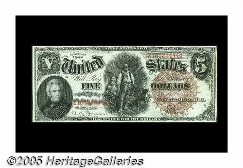 <B>Fr. 72 $5 1880 Legal Tender Choice New.</B></I> Wonderful paper, inks and corners are hallmarks of this lovely Woodchopper.