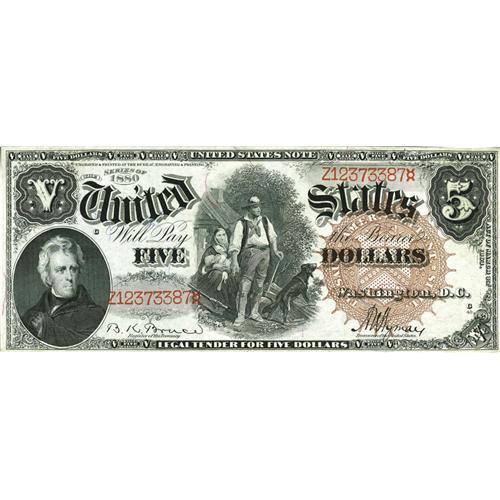 Fr. 72 $5 1880 Legal Tender Gem New. Bright, crackling