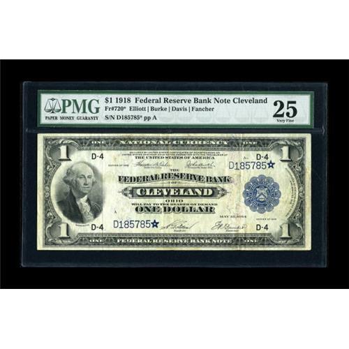 <B>Fr. 720 $1 1918 Federal Reserve Bank Star Note PMG Very Fine 25.</B></I> This example is one of only thirteen enumerated in the Murray catalog. It is well margined and pleasing for the grade. Expect a realization in the area of...<BR><BR><b>Shipping:</b> Coins & Currency (<a target="_blank" href="http://www.heritageauctions.com/common/shipping.php">view shipping information</a>)