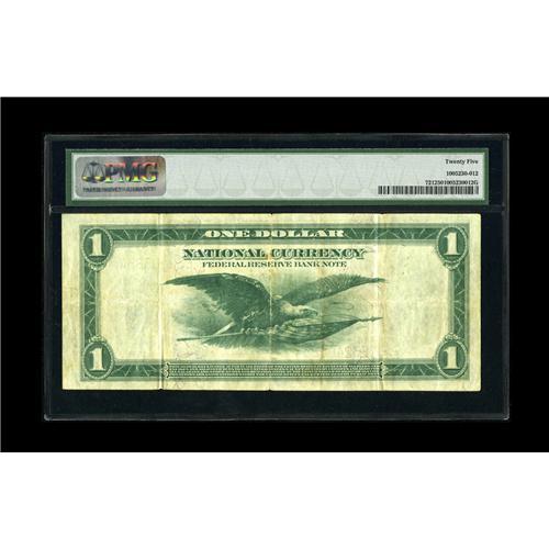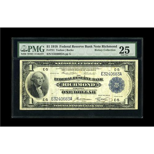 <B>Fr. 721 $1 1918 Federal Reserve Bank Note PMG Very Fine 25.</B></I> While not a particularly scarce Friedberg number, this design is popular, especially when seen in an original state of preservation such as this.<BR><I>Ex: Rickey Collection</B></I>