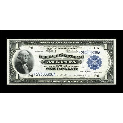<B>Fr. 726 $1 1918 Federal Reserve Bank Note Choice New.</B></I> Embossing and nice margins are highlights of this nicely preserved Atlanta Ace.<BR><I>From The Plymouth Rock Collection</B></I>