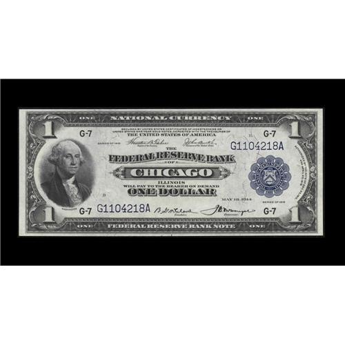 <B>Fr. 727 $1 1918 Federal Reserve Bank Note Gem New.</B></I> Original paper waves and impressive embossing is surrounded by larger than normal margins.