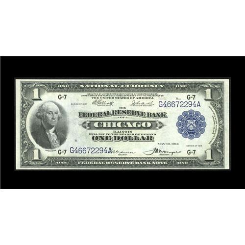 <B>Fr. 729 $1 1918 Federal Reserve Bank Note Very Choice New.</B></I> Deep original embossing highlights this near-Gem Chicago Ace.