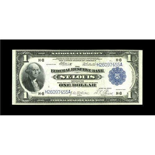 <B>Fr. 733 $1 1918 Federal Reserve Bank Note Very Choice New.</B></I> St. Louis is a scarcer District for these Aces, and this one is very well centered, with good paper originality. A bit more top margin and it would be Gem.
