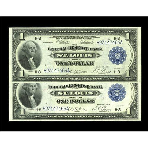 <B>Fr. 733 $1 1918 Federal Reserve Bank Notes Two Consecutive Examples About New.</B></I> Here is a wonderful pair of notes that each exhibit the same center fold and corner bend. The colors are bright and embossing strong.<BR><BR><b>Shipping:</b> Coin/Currency (<a target="_blank" href="http://www.heritageauctions.com/common/shipping.php">view shipping information</a>)