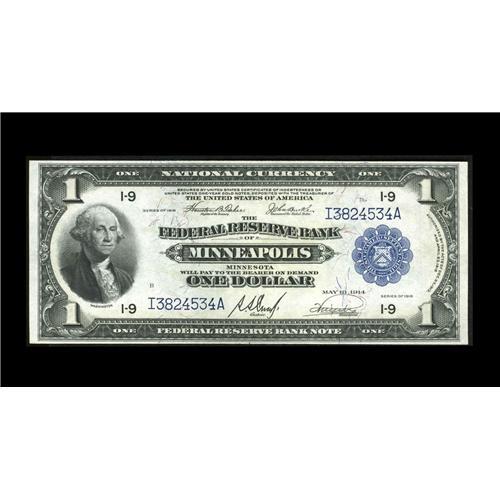 <B>Fr. 734 $1 1918 Federal Reserve Bank Note Very Choice New.</B></I> A nice Minneapolis FRBN Ace.