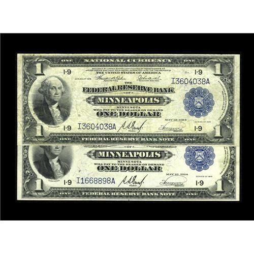 Fr. 734 $1 1918 Federal Reserve Bank Notes Two examples