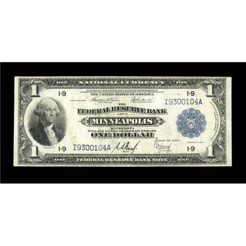 <B>Fr. 735 $1 1918 Federal Reserve Bank Note Very Fine.</B></I> Of the three Minneapolis Friedberg numbers for this design, this is by far the scarcest. In fact Fr. 735 was long considered the scarcest $1 FRBN. With the census data of today, several other $1 FRBN Friedberg numbers are known to be scarcer. Nonetheless, this is still a scarce note. The surfaces are soft on this example.<BR><I>From The Collection of Greg Southward</B></I><BR><BR><b>Shipping:</b> Coins & Currency (<a target="_blank" href="http://www.heritageauctions.com/common/shipping.php">view shipping information</a>)