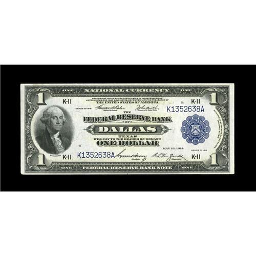 <B>Fr. 740 $1 1918 Federal Reserve Bank Note Very Choice New.</B></I> An attractive white paper Dallas Ace that is nicely margined. The slightest amount of rounding is found on a corner tip.<BR><I>From The Plymouth Rock Collection</B></I>