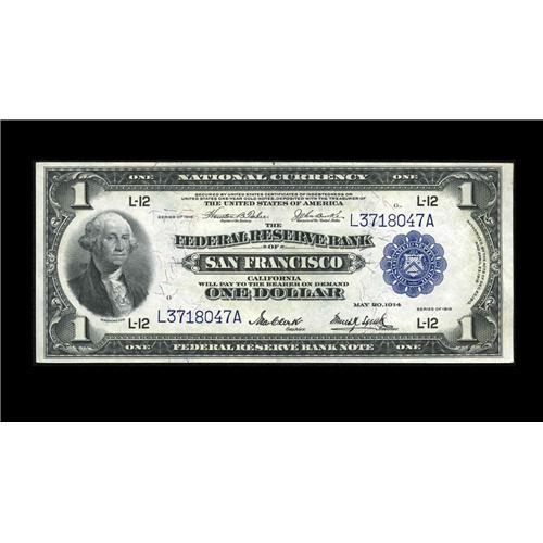<B>Fr. 743 $1 1918 Federal Reserve Bank Note Choice About New.</B></I> There is a single light vertical fold on this clean, originally embossed San Francisco FRBN Ace.