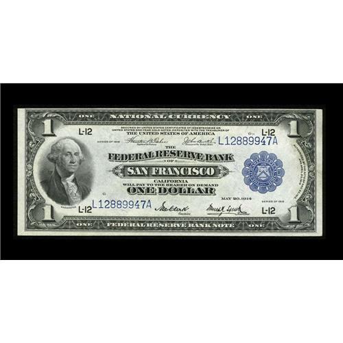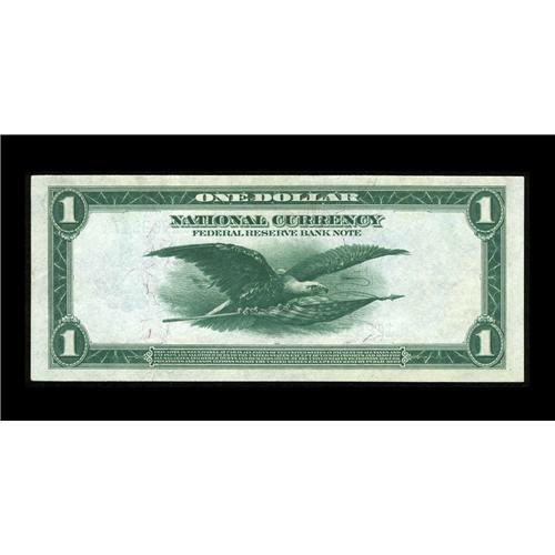 <B>Fr. 743 $1 1918 Federal Reserve Bank Note Choice New.</B></I> Embossing and bright paper are highlights of this San Fran $1 FRBN. The top margin is narrow on this example.<BR><I>From The Plymouth Rock Collection<q