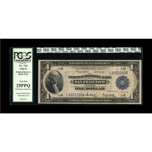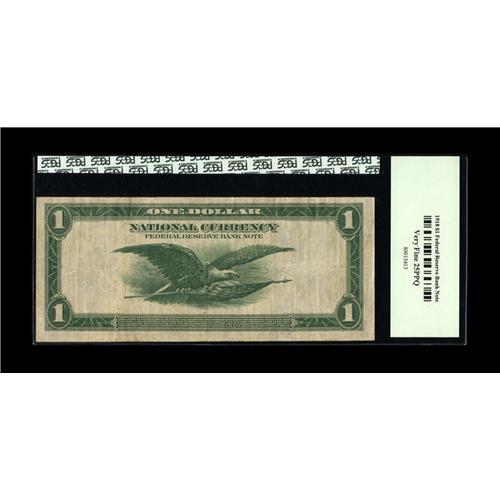 <B>Fr. 743 $1 1918 Federal Reserve Bank Note PCGS Very Fine 25PPQ.</B></I> A picture perfect Very Fine with clearly original paper and color.<BR><I>Ex: Rickey Collection</B></I>