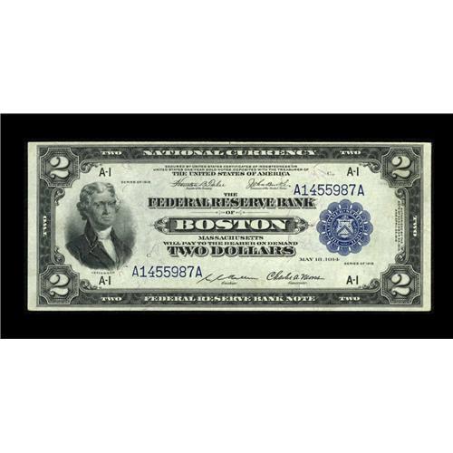 <B>Fr. 747 $2 1918 Federal Reserve Bank Note Choice New.</B></I> A well margined Battleship from the Boston district. A touch of flatness is noted.<BR><BR><b>Shipping:</b> Coin/Currency (<a target="_blank" href="http://www.heritageauctions.com/common/shipping.php">view shipping information</a>)