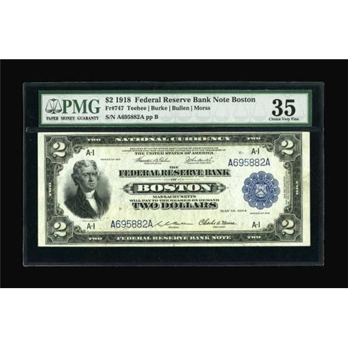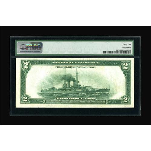 <B>Fr. 747 $2 1918 Federal Reserve Bank Note PMG Choice Very Fine 35.</B></I> The folds that account for the grade fail to interrupt any of the design. The Battleship vignette remains bold and fully detailed.<B><BR></B></I><I>From The John Ameen Collection</B></I><BR><BR><b>Shipping:</b> Coins & Currency (<a target="_blank" href="http://www.heritageauctions.com/common/shipping.php">view shipping information</a>)
