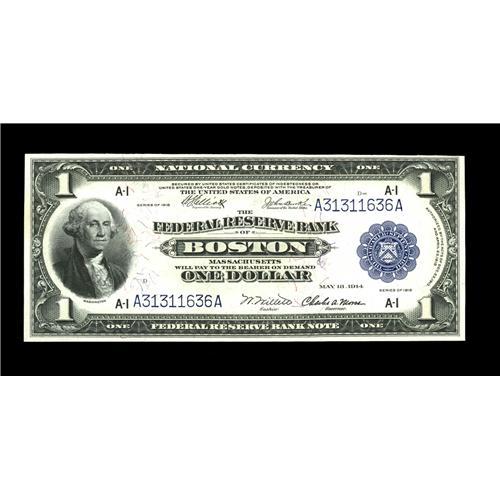 <B>Fr. 749 $1 1918 Federal Reserve Bank Note Choice About Uncirculated.</B></I> Only a faint ghost of a centerfold keeps this bright and well centered note from Choice CU status. We suspect that in a future transaction a grade higher than ours may be applied by the seller. The kind of note that often sells in excess of its technical grade, even without optimistic descriptives applied.