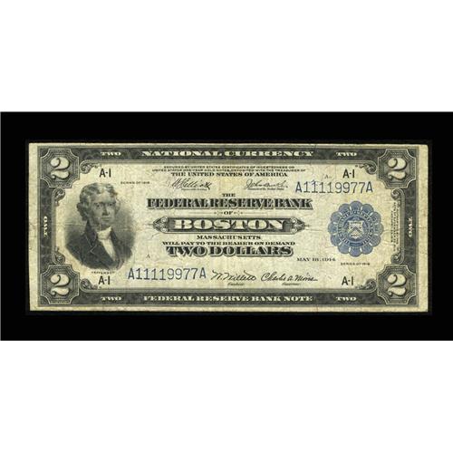 <B>Fr. 749 $2 1918 Federal Reserve Bank Note Very Good-Fine.</B></I> Problem-free for the grade.