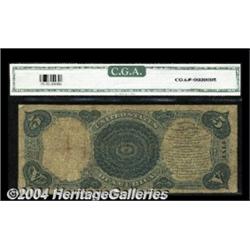 Fr. 75 $5 1880 Legal Tender CGA Very Good-Fine 10. A really rare Type Note, with a census in the high teens for all grades combined. <BR><BR><B>Important notice:</B> Heritage usually auctions material at the rate of 200-250 lots per hour. On some occasions eBay Live bid software or the Internet may not be able to keep up with the pace of the auction. We recommend placing a realistic absentee bid now as insurance to avoid disappointment. Occasionally the auctioneer may eliminate or reject an eBay Live bid, and the auctioneer may also reopen a lot after the close of the eBay live bidding (usually because we missed an audience bid), and may reject your bid even if it shows you as the winning bidder. By bidding via eBay Live, you agree that Heritage may award the lot to another bidder at its sole discretion under the circumstances described above or any other reasonable circumstances. Since eBay bids are not shown to us until we open the lot on the floor, we treat those bids just like floor bids. In most cases the floor responds before the eBay bid is presented to us, due to Internet lag time, so for consistency we have made it a policy that floor bids are always considered first over tie eBay live bids. Also please note that all Heritage lots purchased through eBay Live carry a 20% Buyer's Premium. Please make sure you read the Terms and Conditions before you bid. <BR><BR><B>IMPORTANT ANNOUNCEMENT ABOUT RESERVES:</B> Heritage now divulges all reserves on its web site 7 days before every auction. If you want to know whether the reserve on this lot has been met, and if not, what the reserve amount is, please visit this lot page on the HeritageCoin.com web site, or email: bid@HeritageGalleries.com