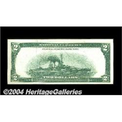 Fr. 750 $2 1918 Federal Reserve Bank Note Very Choice New. A near-Gem example that would rate the Superb grade if the back centering were not a bit low. Deep, original embossing and perfect paper color highlight this pretty note. <BR><BR><B>Important notice:</B> Heritage usually auctions material at the rate of 200-250 lots per hour. On some occasions eBay Live bid software or the Internet may not be able to keep up with the pace of the auction. We recommend placing a realistic absentee bid now as insurance to avoid disappointment. Occasionally the auctioneer may eliminate or reject an eBay Live bid, and the auctioneer may also reopen a lot after the close of the eBay live bidding (usually because we missed an audience bid), and may reject your bid even if it shows you as the winning bidder. By bidding via eBay Live, you agree that Heritage may award the lot to another bidder at its sole discretion under the circumstances described above or any other reasonable circumstances. Since eBay bids are not shown to us until we open the lot on the floor, we treat those bids just like floor bids. In most cases the floor responds before the eBay bid is presented to us, due to Internet lag time, so for consistency we have made it a policy that floor bids are always considered first over tie eBay live bids. Also please note that all Heritage lots purchased through eBay Live carry a 20% Buyer's Premium. Please make sure you read the Terms and Conditions before you bid. <BR><BR><B>IMPORTANT ANNOUNCEMENT ABOUT RESERVES:</B> Heritage now divulges all reserves on its web site 7 days before every auction. If you want to know whether the reserve on this lot has been met, and if not, what the reserve amount is, please visit this lot page on the HeritageCoin.com web site, or email: bid@HeritageGalleries.com