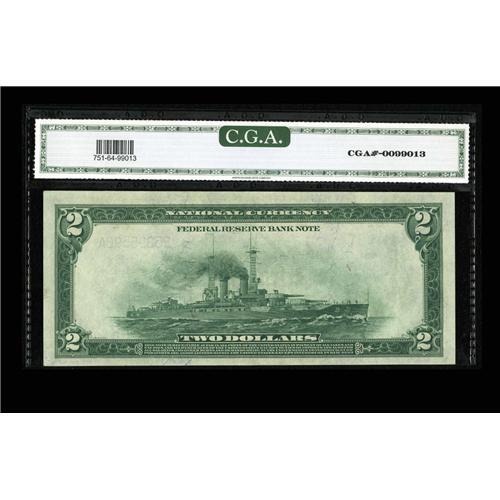 <B>Fr. 751 $2 1918 Federal Reserve Bank Note CGA Choice Uncirculated 64.</B></I> This is a pleasing Battleship off New York that is well embossed, with bright color.