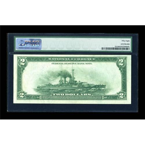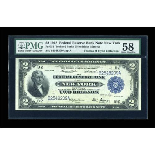 <B>Fr. 751 $2 1918 Federal Reserve Bank Note PMG Choice About Unc 58.</B></I> A nice AU example of this basic New York Battleship. Problem free and with the appearance of an uncirculated piece.<BR><I>From The Thomas M. Flynn Collection</B></I><BR><BR><b>Shipping:</b> Coins & Currency (<a target="_blank" href="http://www.heritageauctions.com/common/shipping.php">view shipping information</a>)