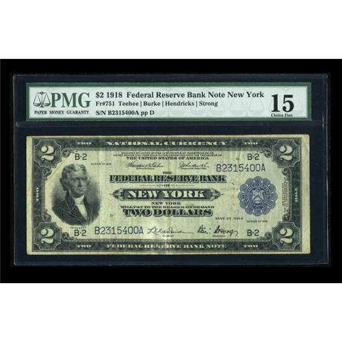 <B>Fr. 751 $2 1918 Federal Reserve Bank Note PMG Choice Fine 15.</B></I> The all important Battleship vignette is uninterrupted.<BR><BR><b>Shipping:</b> Coins & Currency (<a target="_blank" href="http://www.heritageauctions.com/common/shipping.php">view shipping information</a>)
