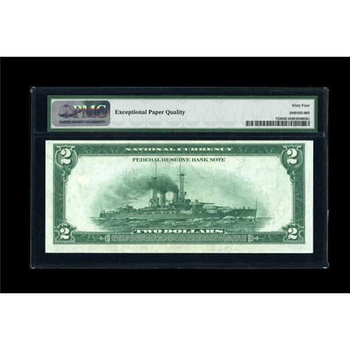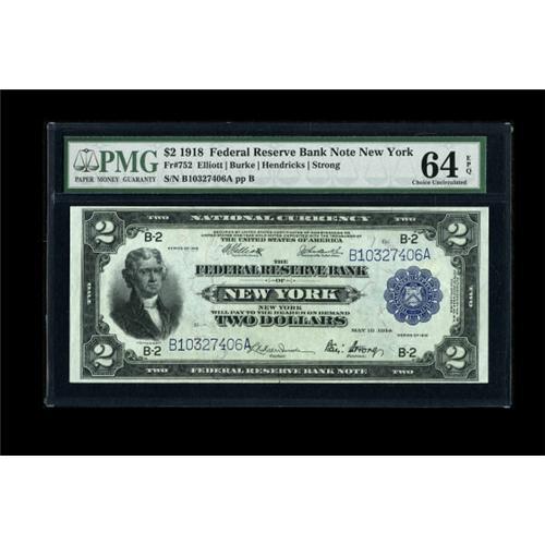 <B>Fr. 752 $2 1918 Federal Reserve Bank Note PMG Choice Uncirculated 64 EPQ.</B></I> A nice Battleship which bears the coveted "EPQ" (Exceptional Paper Quality) designation. <BR><BR><b>Shipping:</b> Coins & Currency (<a target="_blank" href="http://www.heritageauctions.com/common/shipping.php">view shipping information</a>)