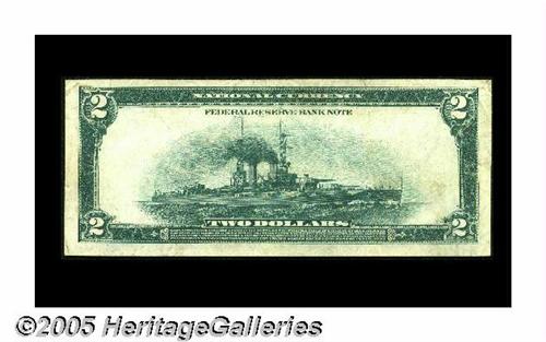 <B>Fr. 752 $2 1918 Federal Reserve Bank Note Very Fine.</B></I> Nice color and edges bedeck this Battleship that is ready to sail into a new collection.
