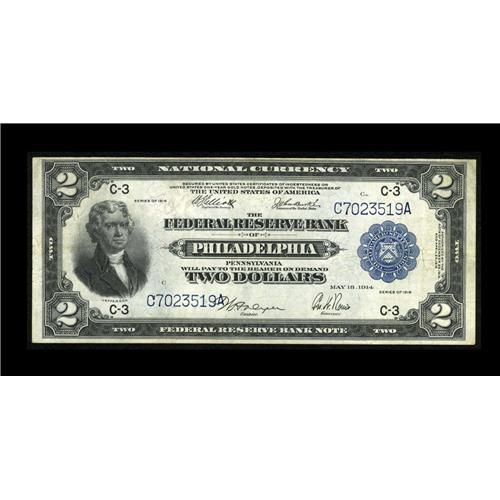<B>Fr. 756 $2 1918 Federal Reserve Bank Note Very Fine.</B></I> This is a nice mid-grade representative of the design type. A small top margin tear is noticed.