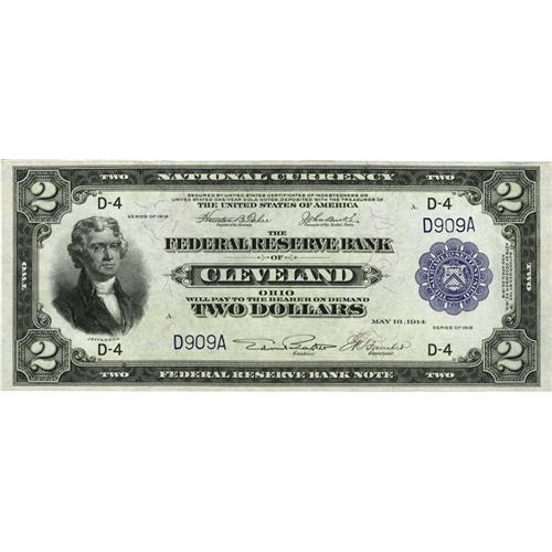 <B>Fr. 757 $2 1918 Federal Reserve Bank Note Superb Gem New.</B></I> Originality and freshness are highlights of this embossed Cleveland Deuce with serial number 909.<BR><I>From The Plymouth Rock Collection</B></I>