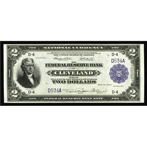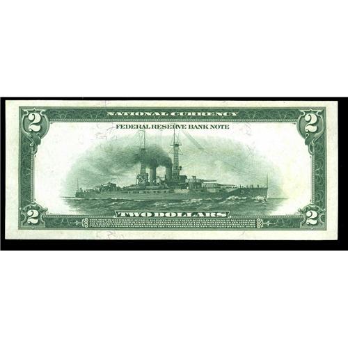 <B>Fr. 757 $2 1918 Federal Reserve Bank Note Very Choice New.</B></I> Deeply pronounced original embossing highlights this three digit serial number Battleship off Cleveland. The top margin is just a bit too tight for Gem. This is one of two low digit notes for the taking.
