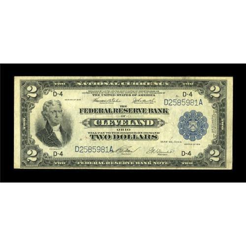 <B>Fr. 758 $2 1918 Federal Reserve Bank Note Fine-Very Fine.</B></I> The paper is a touch dark, but this Cleveland Battleship Two makes the VF grade in most other respects. <BR><BR><b>Shipping:</b> Coins & Currency (<a target="_blank" href="http://www.heritageauctions.com/common/shipping.php">view shipping information</a>)