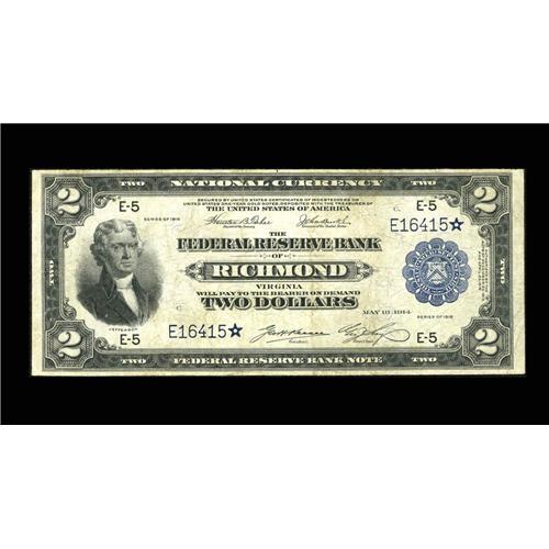 <B>Fr. 760 $2 1918 Federal Reserve Bank Note Star Fine+.</B></I> This is one of just five stars known for this Friedberg number, one of which has never been on the market and another which was offered in the Grinnell collection and has not been seen since. The Merlau collection example is a nice, evenly circulated piece with no problems whatever.<BR><I>From the Large Size Star Note Collection of Richard Merlau</B></I>