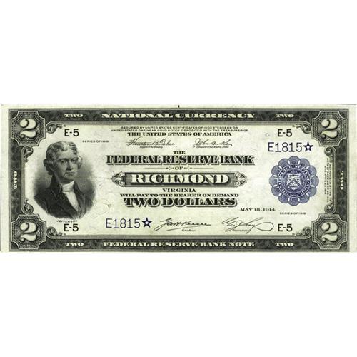 <B>Fr. 760 $2 1918 Federal Reserve Star Bank Note Very Fine-Extremely Fine.</B></I> This evenly circulated note is one of only five stars in the Murray census for this Friedberg number.<BR><I>From The Plymouth Rock Collection</B></I>