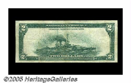 <B>Fr. 761 $2 1918 Federal Reserve Bank Note Choice Very Fine.</B></I> A very scarce note with only a few more than two dozen examples known in all grades. This is a perfectly original piece with well-balanced margins and original paper surfaces that still show their embossing. If you're looking for a lovely mid-grade Battleship to add to your collection, why not select one with some meaningful scarcity?