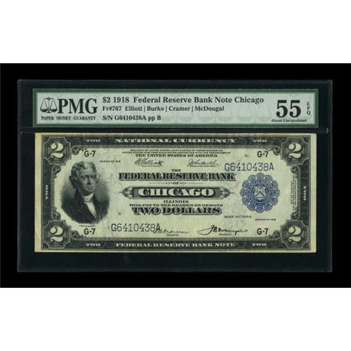 <B>Fr. 767 $2 1918 Federal Reserve Bank Note PMG About Uncirculated 55 EPQ.</B></I> Some light handling and a mere corner fold are noted on this otherwise uncirculated issue with bold embossing.<BR><BR><b>Shipping:</b> Coins & Currency (<a target="_blank" href="http://www.heritageauctions.com/common/shipping.php">view shipping information</a>)