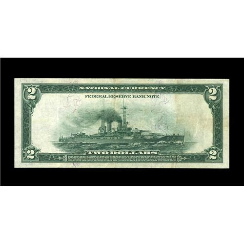 <B>Fr. 767 $2 1918 Federal Reserve Bank Note Very Fine-Extremely Fine.</B></I> There is a little soil at the right end of the back that holds this otherwise nice Battleship from the full XF grade.