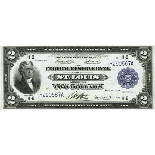 <B>Fr. 768 $2 1918 Federal Reserve Bank Note Gem New.</B></I> This St. Louis Battleship has excellent centering and eye appeal. Now is the time to start building that district set before the grading services come out with registry sets.<BR><I>From The Plymouth Rock Collection</B></I>
