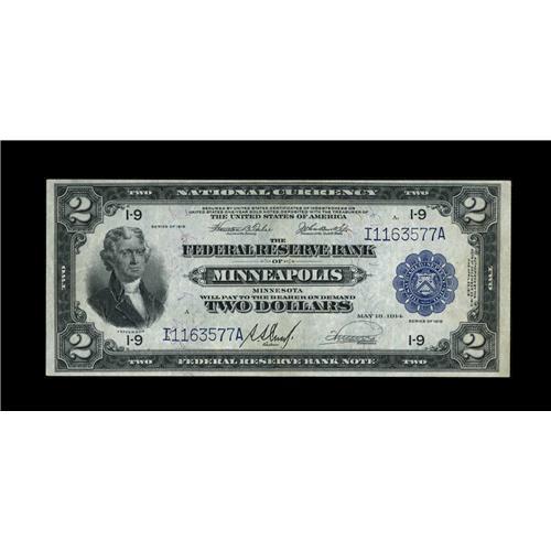 <B>Fr. 772 $2 1918 Federal Reserve Bank Note Choice About New.</B></I> Close inspection reveals a soft center bend on this bright Minneapolis Deuce.<BR><I>From The Plymouth Rock Collection</B></I>