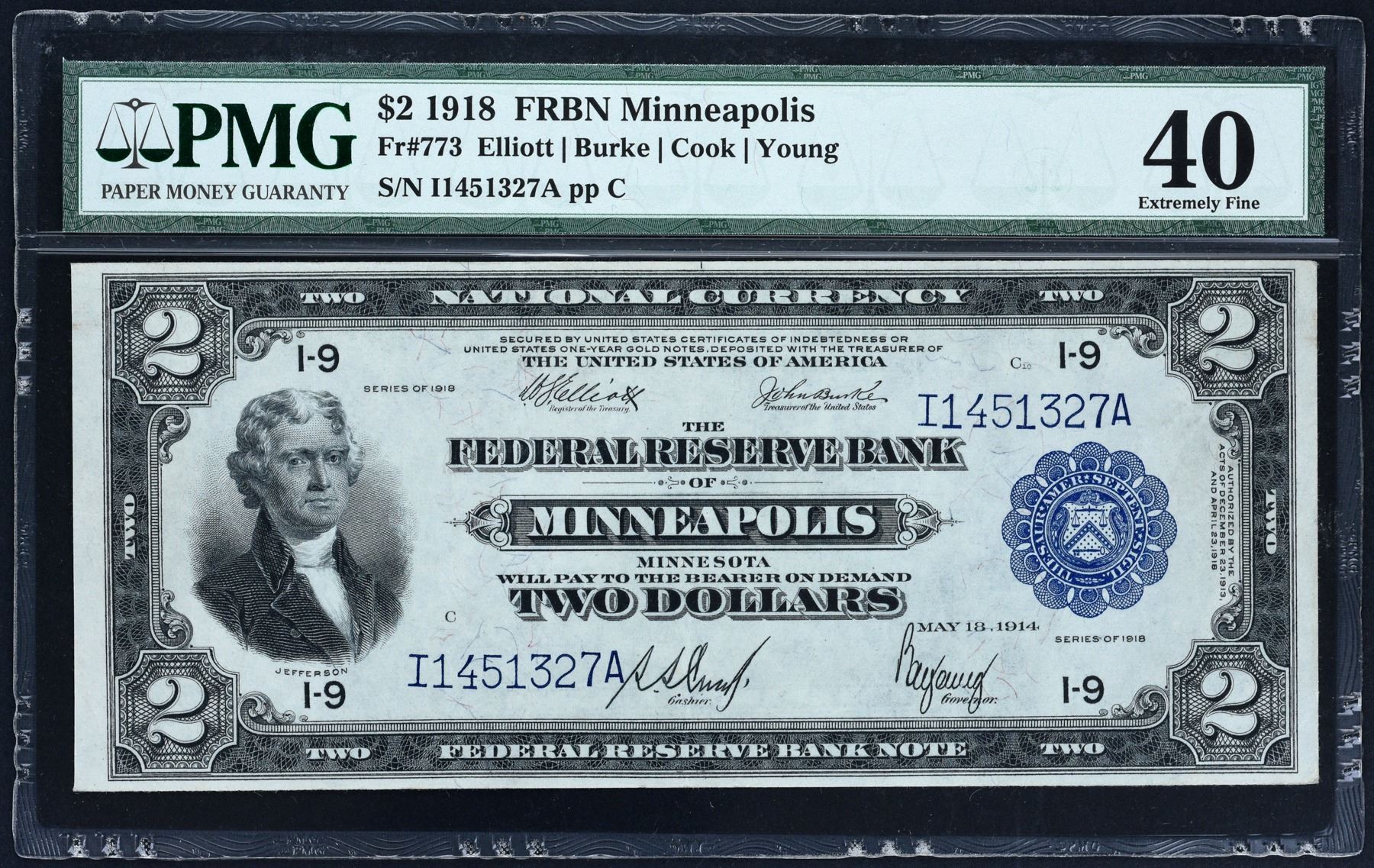 Title: Fr. 773 $2 1918 FRBN Minneapolis PMG Extremely Fine 40