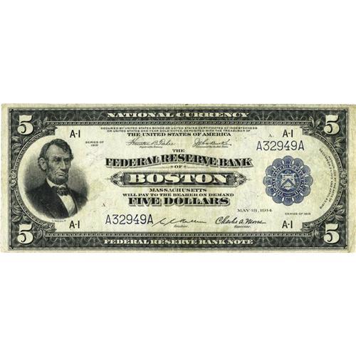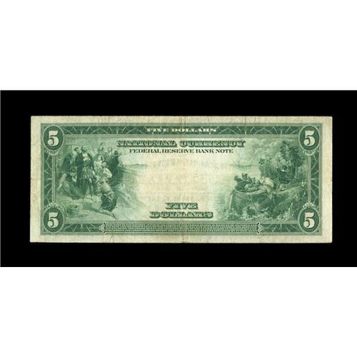 <B>Fr. 781 $5 1918 Federal Reserve Bank Note Very Fine.</B></I> Tonight we offer another pleasing mid-grade example from this tougher district. The note is nicely margined and remains bright.<BR><I>From The Plymouth Rock Collection</B></I>